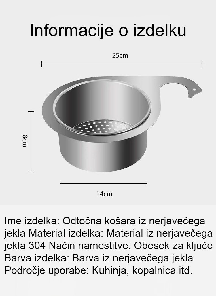 Odtočna košara iz nerjavečega jekla 304